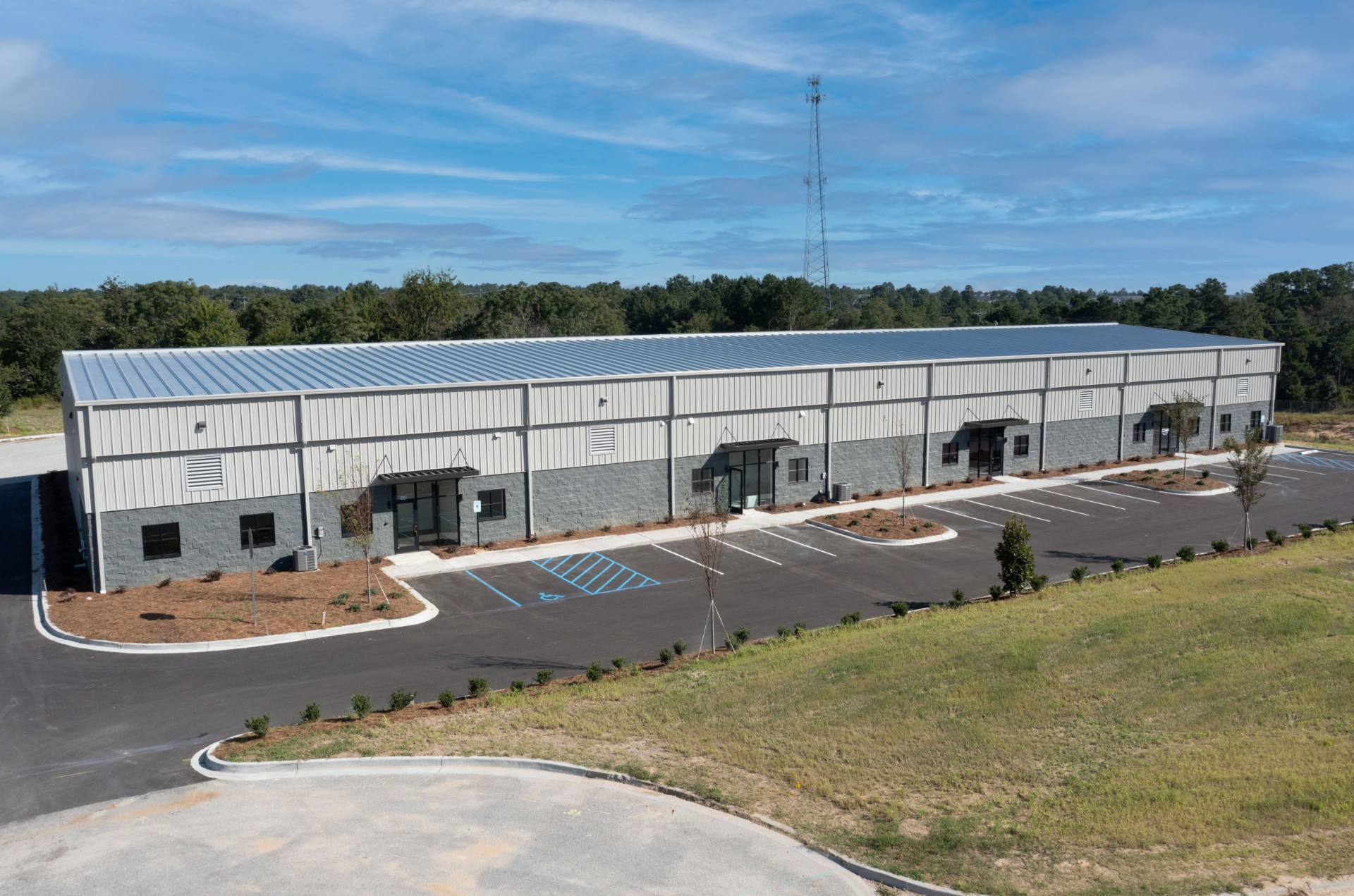 The Newland Road Speculative Building is a multi-tenant pre-engineered metal building designed to accommodate small to mid-sized businesses. The site includes a large truck court with multiple dock and grade door positions serving each tenant. The building features clear-span construction with a 22-foot eave height and is equipped with a fire suppression system. Two suites include speculative office space with light-duty storage mezzanines and the flexibility for future expansion. The third suite includes utilities roughed in to allow for efficient build-out of a custom office space.